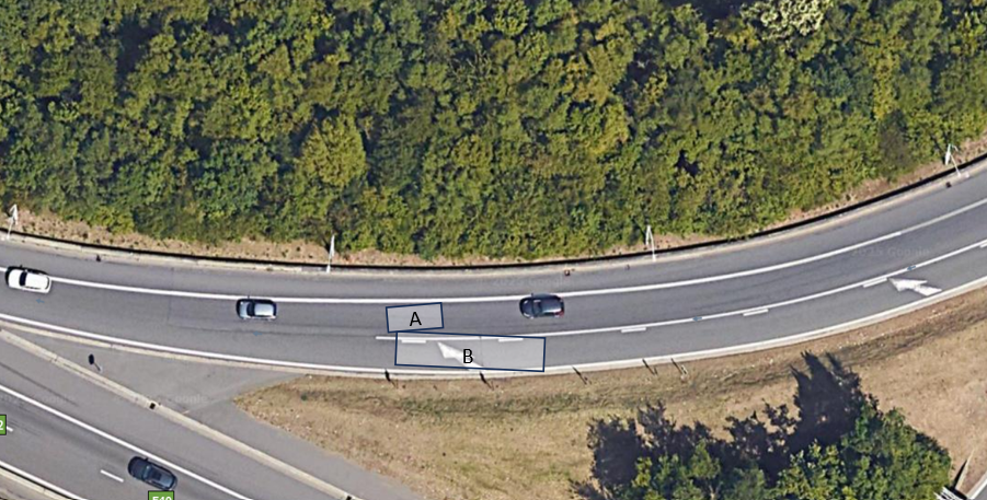 Le véhicule A circule sur l'autoroute E25 en provenance de Maastricht. Celui-ci s'engage dans l'échangeur de Cheratte afin d'emprunter l'autoroute E40 en direction de Bruxelles.